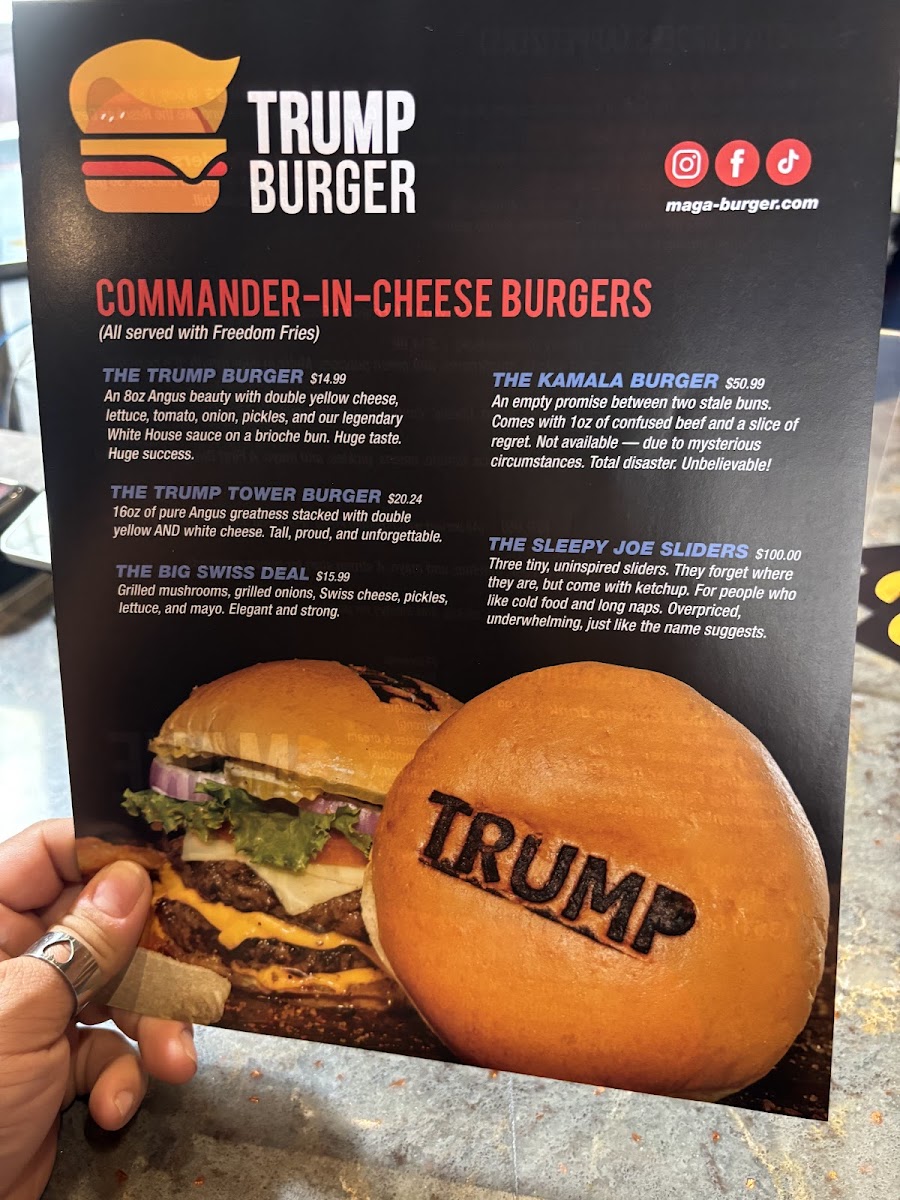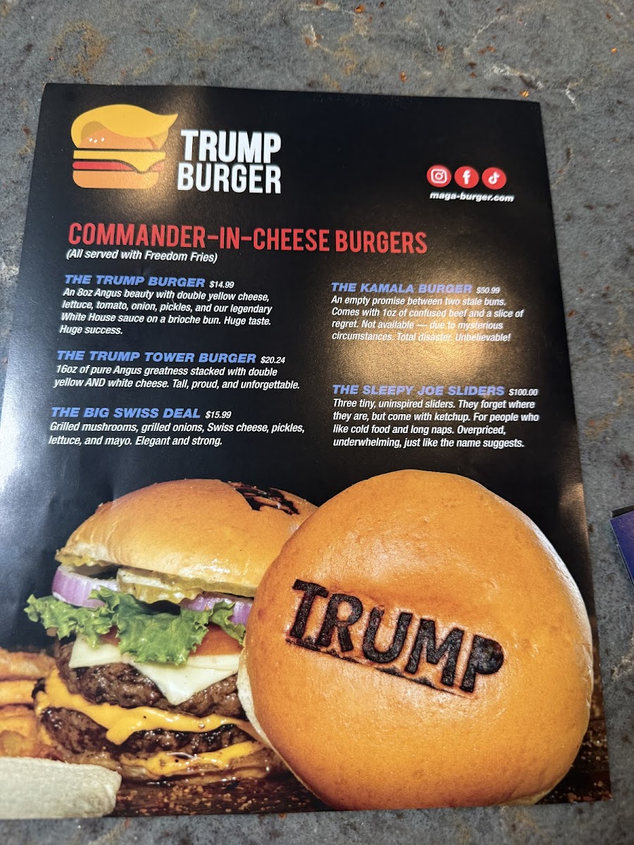 Of course, no visit would be complete without one of their signature burgers. The Trump Burgers are the star of the menu, featuring a juicy beef patty that pairs perfectly with all the classic toppings. For those looking to up the ante, the Trump Tower burger is a towering creation that will definitely leave you satisfied. If you prefer something with a bit more zing, try the Kamala Burger, or enjoy the indulgent Bigg Swiss, which boasts melted Swiss cheese for an extra layer of flavor.
